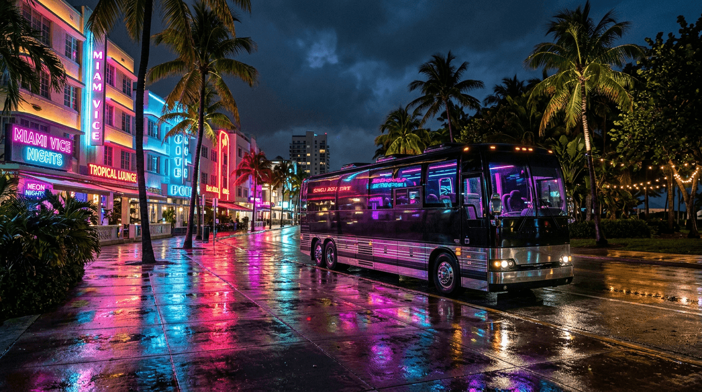 Every vehicle fully licensed, impeccably maintained, loaded with premium amenities. BYOB permitted on Florida party bus rentals — confirm with your operator.