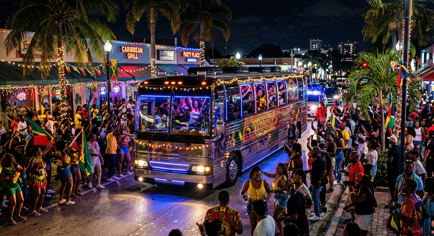 - Carnival season party buses — early-morning availability for J'ouvert events